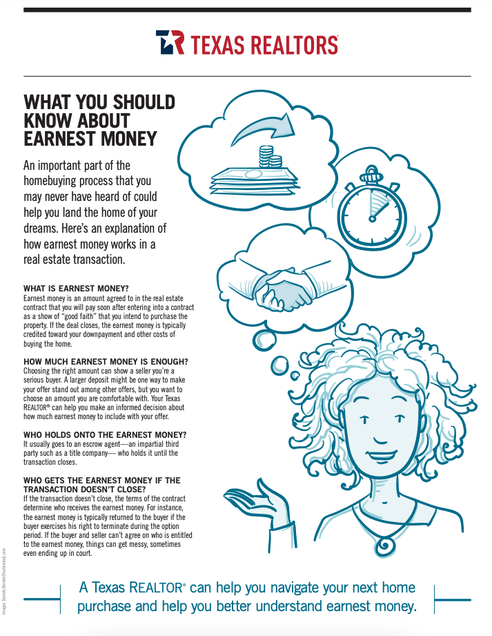 Earnest money is a deposit the buyer pays when they sign the contract to show they're serious about purchasing your property. If the sale goes through, this money typically goes toward their down payment and other costs.